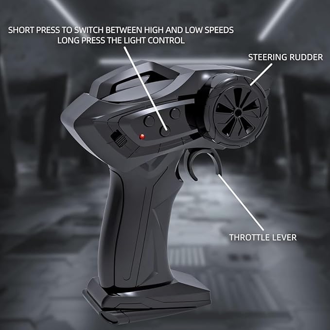 - 🎮 Precision Control with LED Lighting-- Features front/rear proportional throttle, steering control, and high/low speed modes. LED headlights, taillights, and underglow add style and visibility during night races.